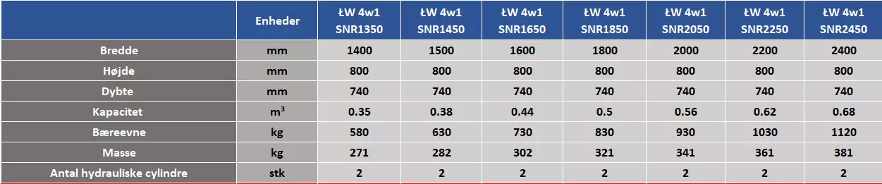 | Enheder | ŁW 4w1 SNR1850 | ŁW 4w1 SNR2050 | ŁW 4w1 SNR2250 | ŁW 4w1 SNR2450 | |