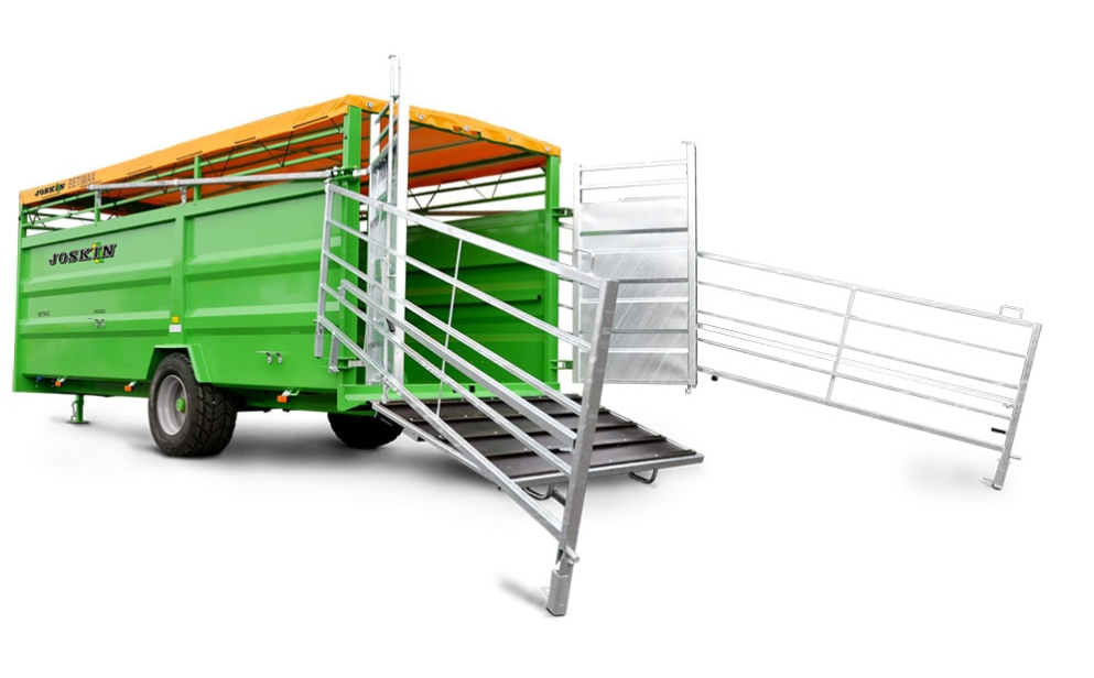 BETIMAX R kreaturvogn er forskellig fra den hældende version, idet den gør brug af en rampe. Sidstnævnte er konstrueret til at have en meget lille på- og afl æsningsvinkel for at mindske risiciene ved håndtering af dyrene. Trinene, der giver adgang til rampen samt mellem rampen og ladet, er begrænset til kun et par centimeter. Takket være lamellerne i behandlet træ med begrænset højde undgår kvæget at glide eller snuble. En galvaniseret stålramme støtter hele køretøjet og sikrer en stabil og fast læsseplatform.