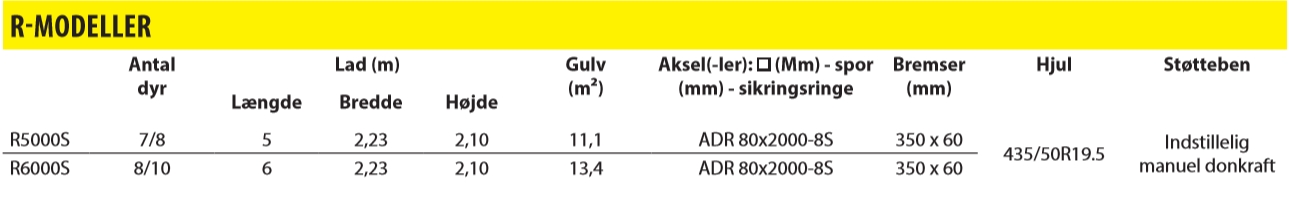 BETIMAX R, som er designet på samme grundlag som RDS. Den væsentligste forskel er, at den ikke har et hældende ophæng. Den har også en fast trækstang og en læsserampe. Det 210 cm højde lad er lakeret overalt. Ladgulvet, fremstillet af anti-skrid-plade med hammerslagsmønster, har brudte hjørner forneden på sidevæggene for at gøre rengøringen lettere. Endelig er den udstyret med løftede kanter på side- og bagklappen for at garantere 100% forsegling. Rampen er som standard udstyret med to returfj edre for let løft. En hydraulikcylinder til ubesværet løft fås også som ekstraudstyr.