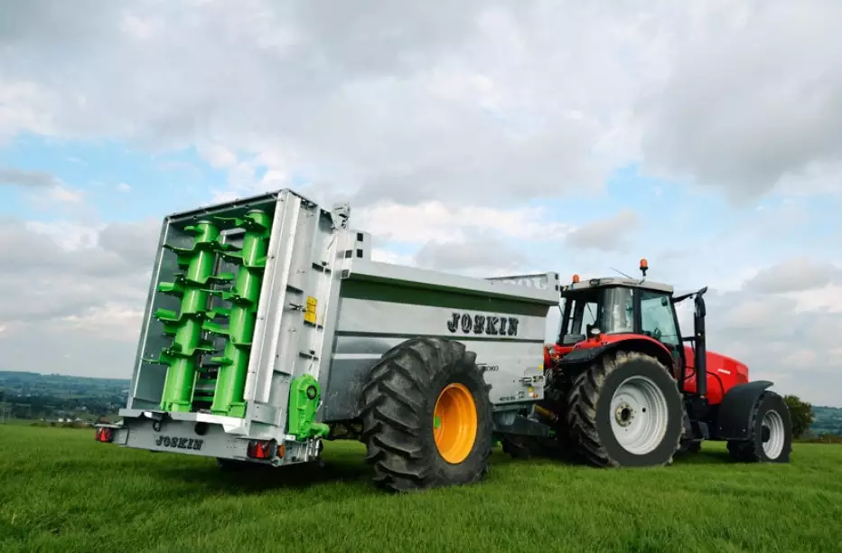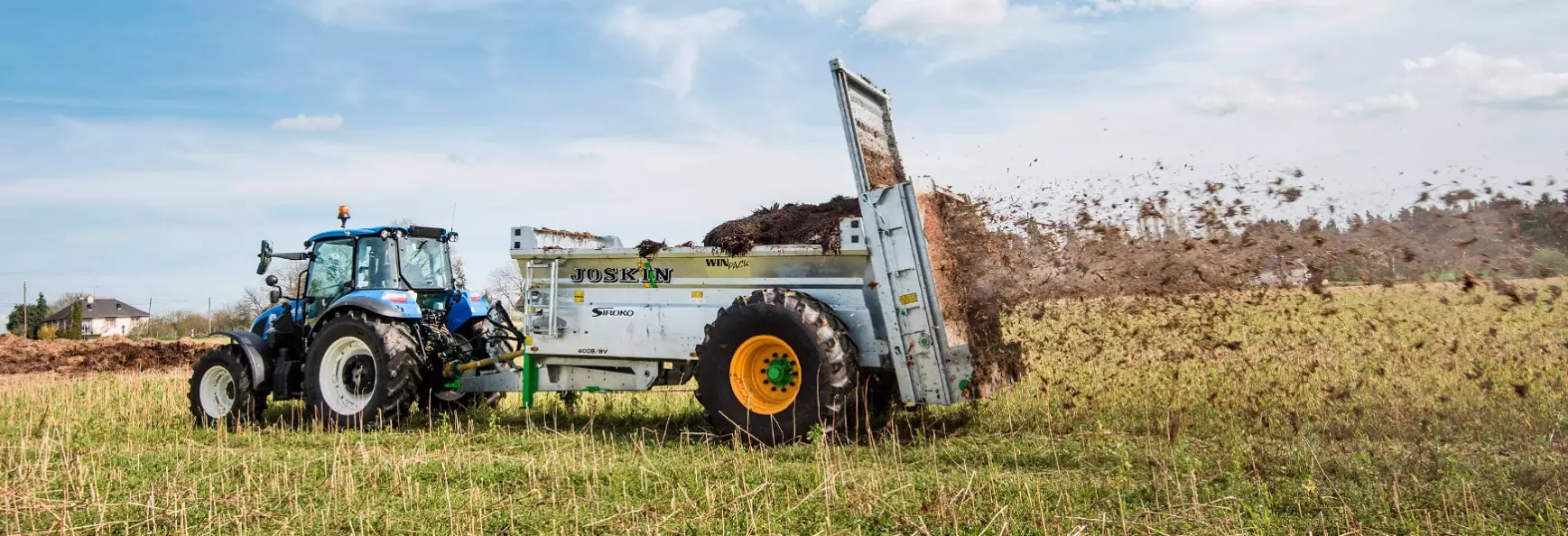 JOSKINs SIROKO-spreder med sænket galvaniseret lad er bemærkelsesværdig på mange måder: Dens innovative design gør vedligeholdelsen meget nemmere. Tilkoblingen med tværaffj edring og hjulenes store dimensioner giver den fremragende stabilitet både under arbejdet og på vejen. Dens lad i HLE 550-højstyrkestål består af på hinanden følgende foldninger og har en rektangulær kant foroven. Sidevæggene med en højde på 850 mm, 1.090 mm eller 1.340 mm giver en belastningskapacitet på 5 m³ til 14.17 m³. De to valser med foldede spiraler fi ndeler og spreder fra 7 til 10 m pr. række afhængigt af produktet, der spredes.