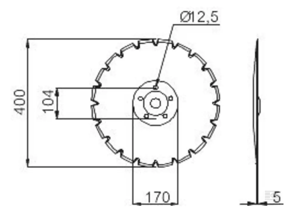 | Tallerken Ø410 mm uden navhul, tykkelse 5 mm, flad passende til Väderstad Rapid |