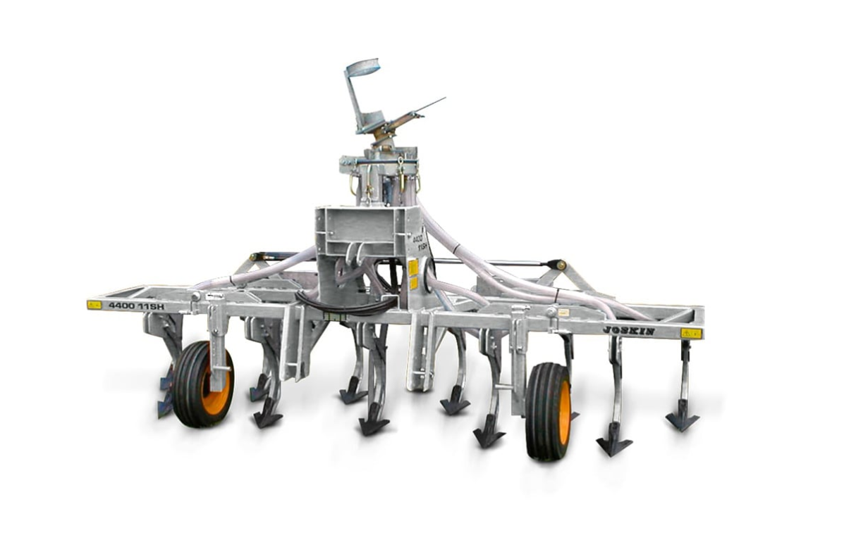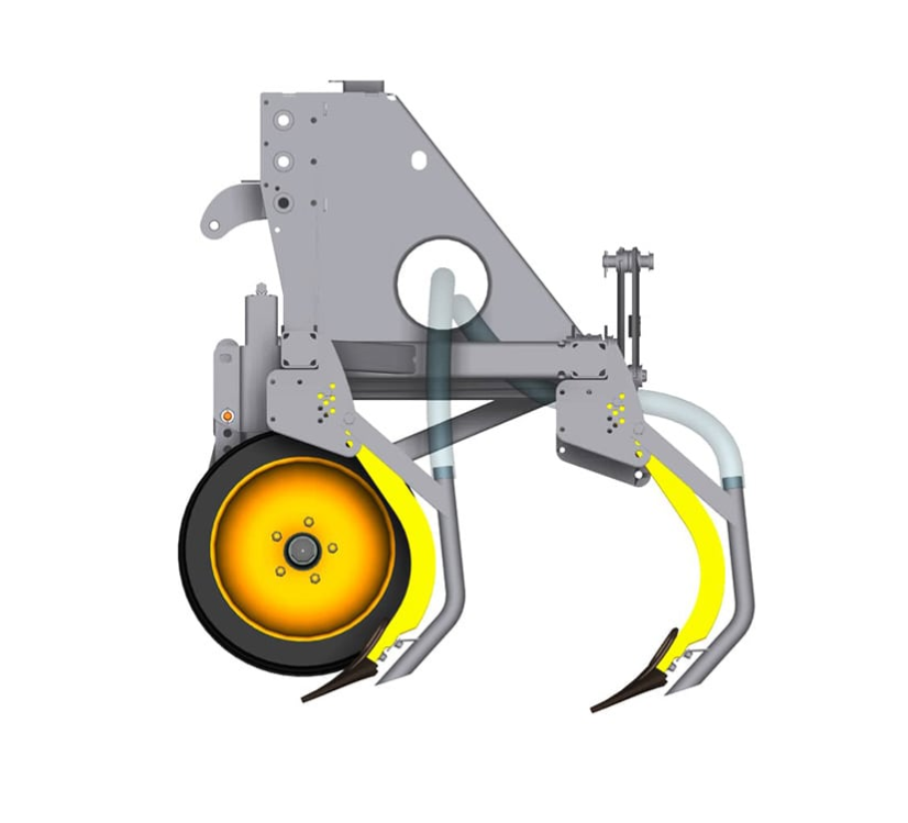 Modellen 5200/13SH kan forsynes med et ekstra par målerhjul. Denne større bredde sikrer en mere præcis justering og en bedre stabilitet, når der arbejdes i markerne.