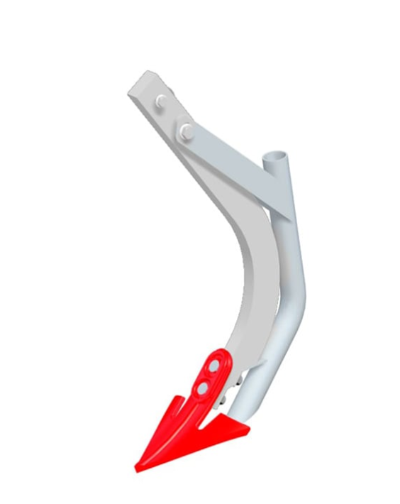 TERRASOC sortjordsnedfælderen er forsynet med faste sideskær, der afsluttes med et fl adt gåsefodsskær med jern (24 cm brede) med 40 cm’s mellemrum og en sikringsbolt. Sideskærenes form og jernenes savtakker forhindrer risiko for tilstopning. Fordelene ved dette system er: