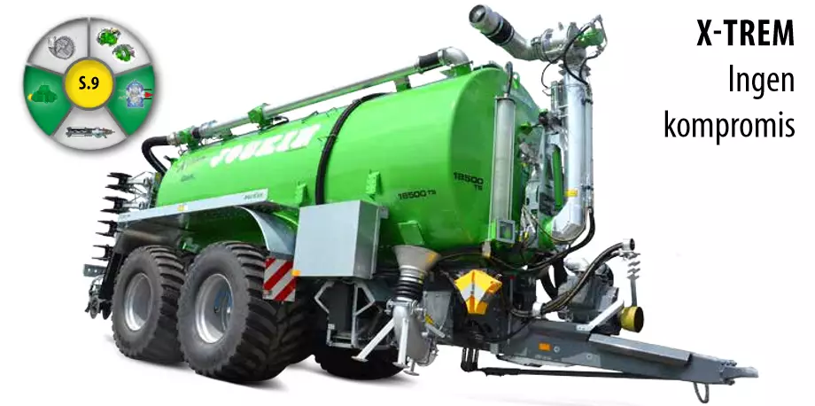X-TREM-gyllesprederen er det ideelle køretøj til maskinstationer, som ønsker en maskine med kort længde, stor tankdiameter og dæk op til Ø 1,83 m (f.eks. 800/65R32). Chassiset, som er 760 mm bredt ved de bevægende dele, giver mulighed for at påsætte brede dæk (≤ 850 mm), uden at bagakslens store styrevinkel bliver reduceret. Hydropneumatisk trækstang, selvstyrende system, Hydro-tandem og forberedt til bred bom er kun del del af udstyret, der gør denne tankvogn til det ideelle materiel til de mest krævende opgaver.